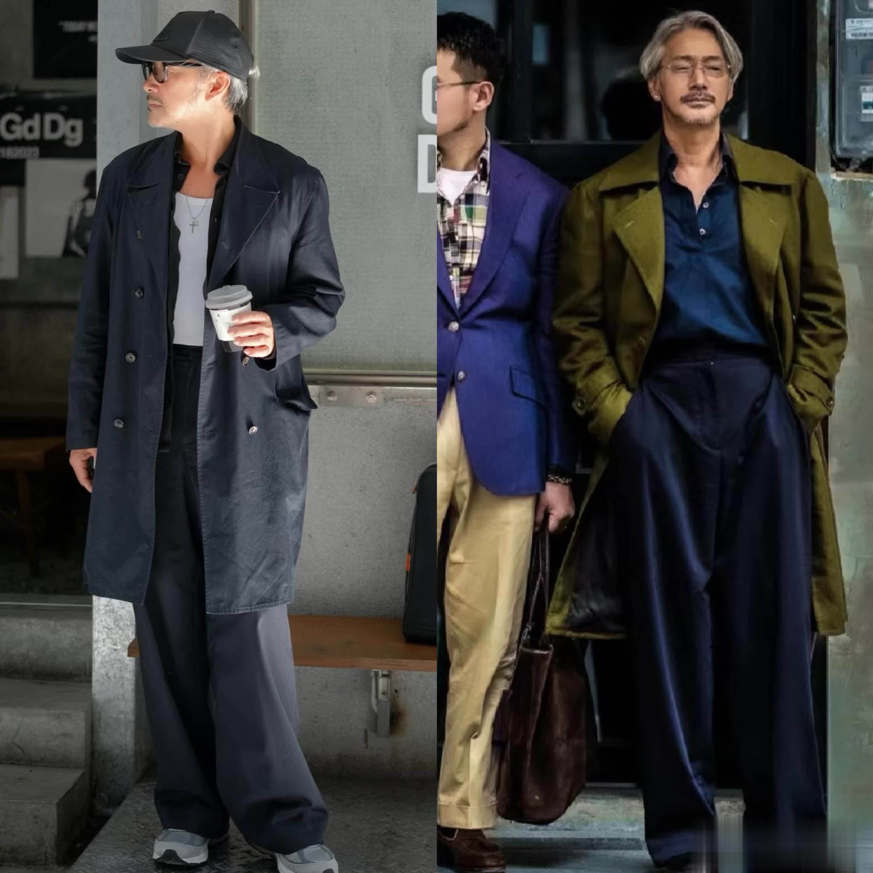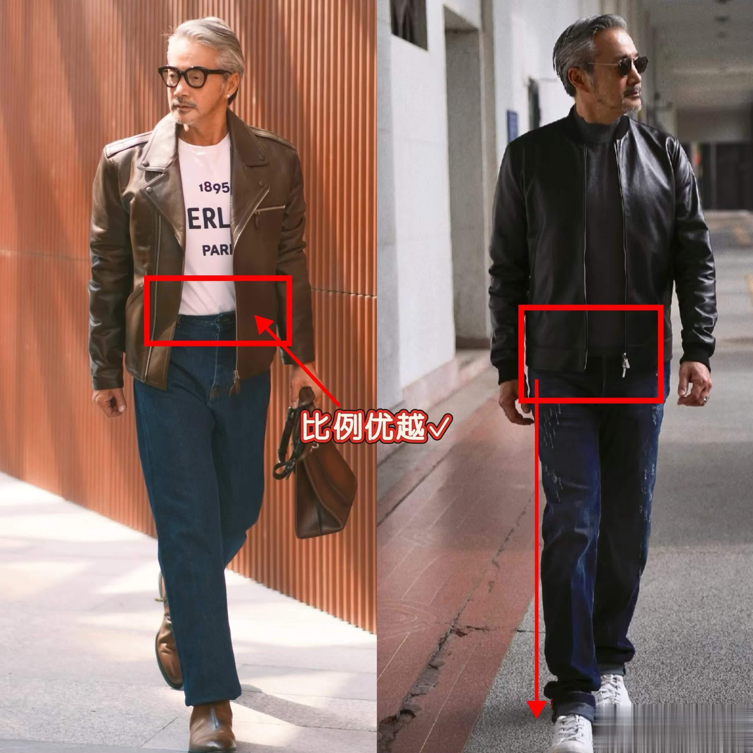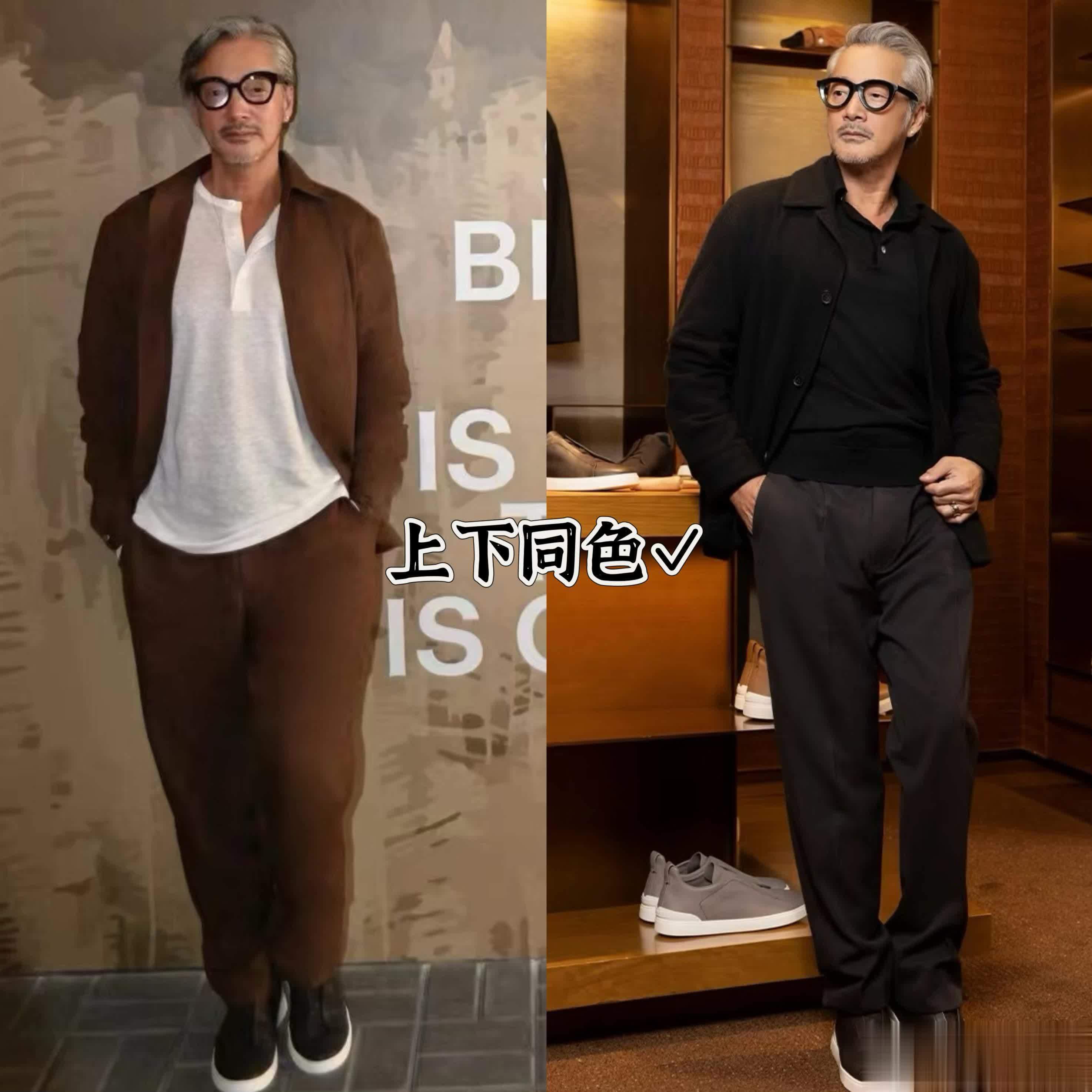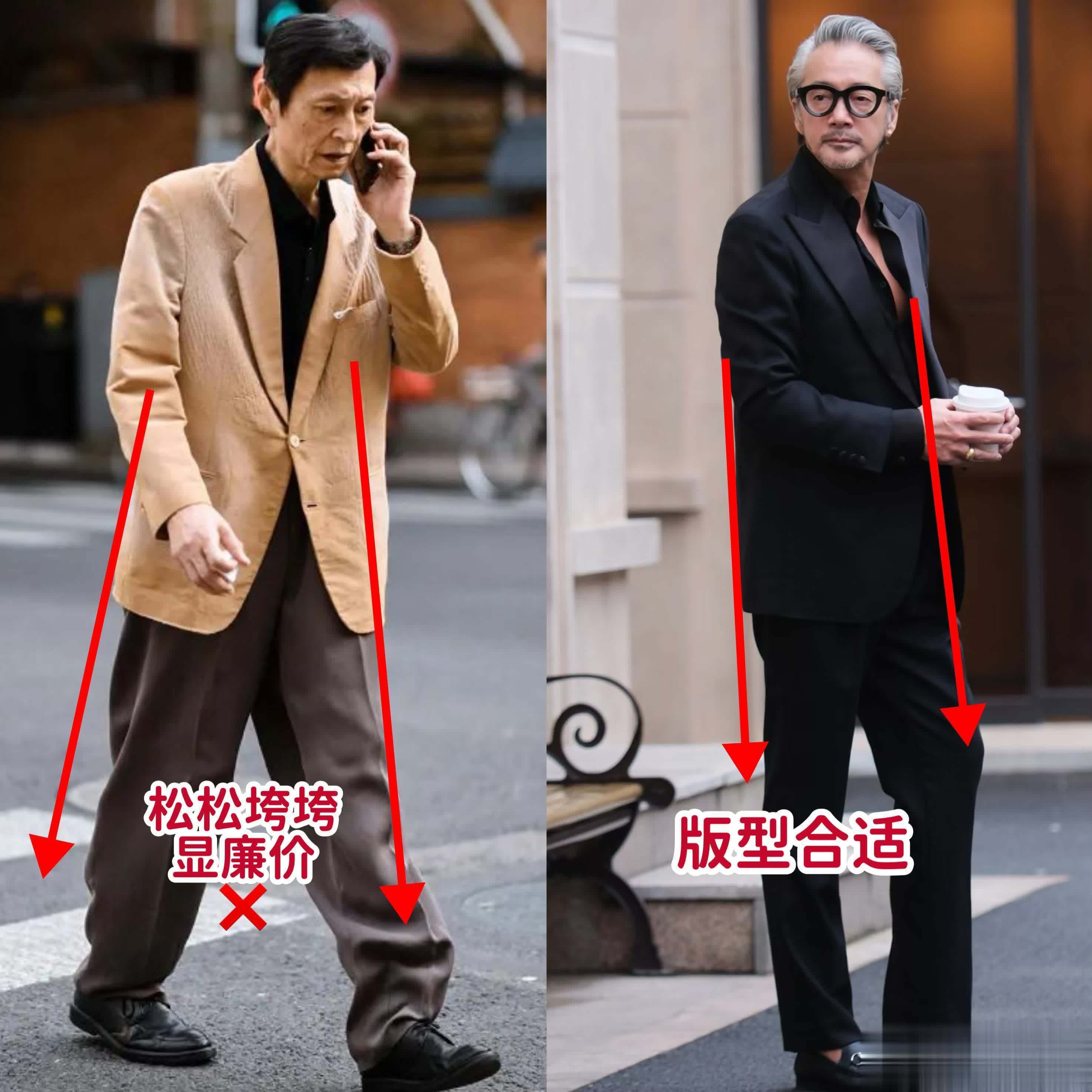 这位大叔的衣服从不会出现松垮拖沓的情况,每次都能选到恰到好处的版型:肩线贴合肩膀,腰部采用直筒剪裁,裤筒宽度适中,整体贴合身材比例,显得身形格外挺拔。