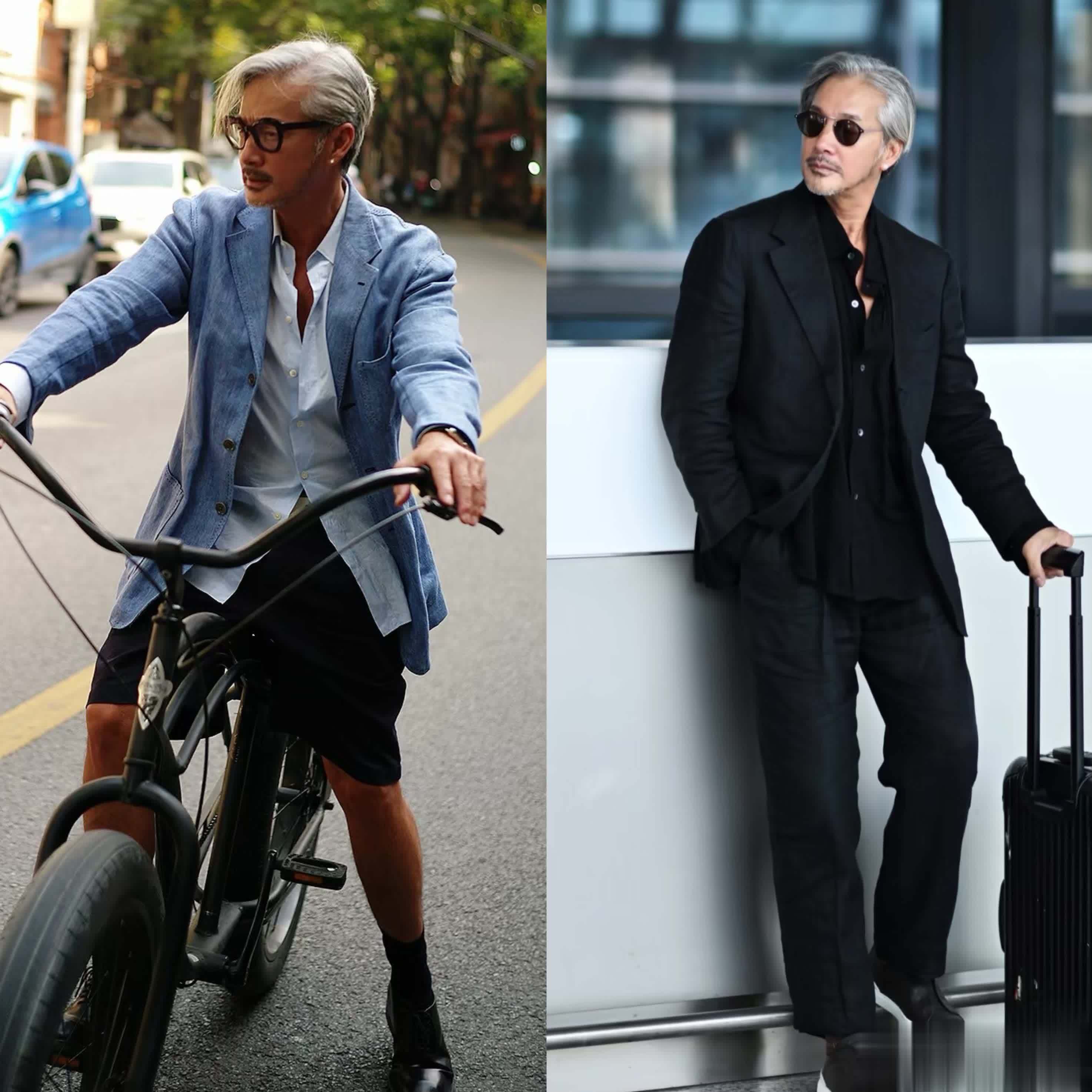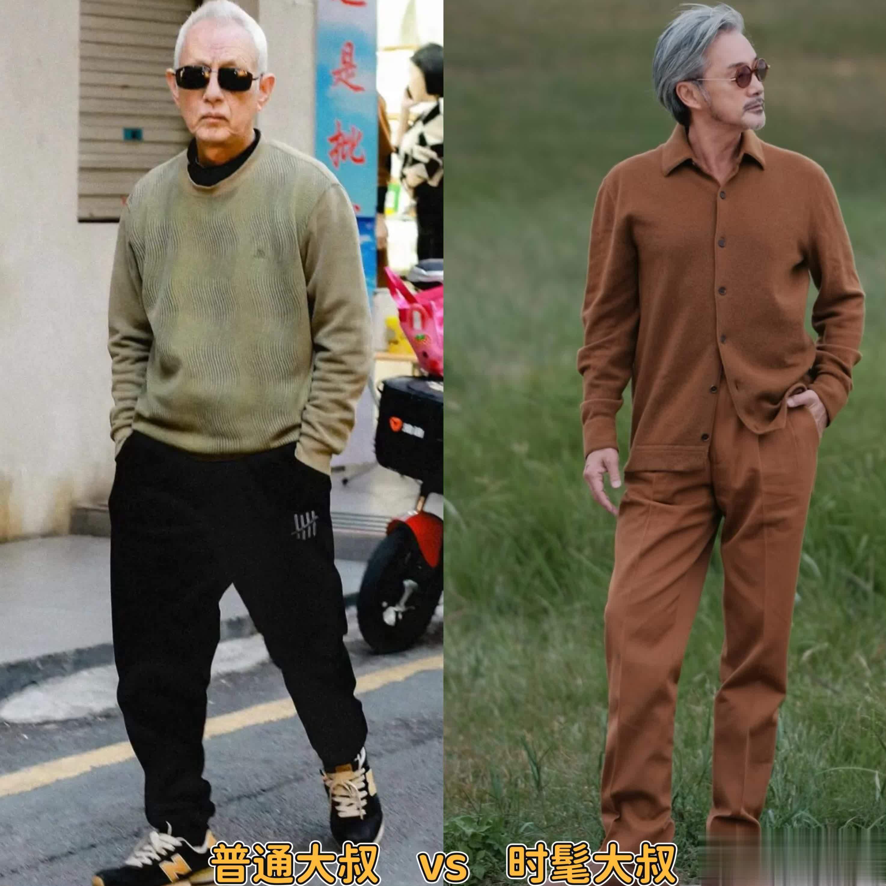 然而,总有人能打破这种刻板印象。就像下面这位大叔,虽已六十多岁,一头银白短发,穿着却依旧时尚,精神状态与身边普通的中年大叔截然不同。